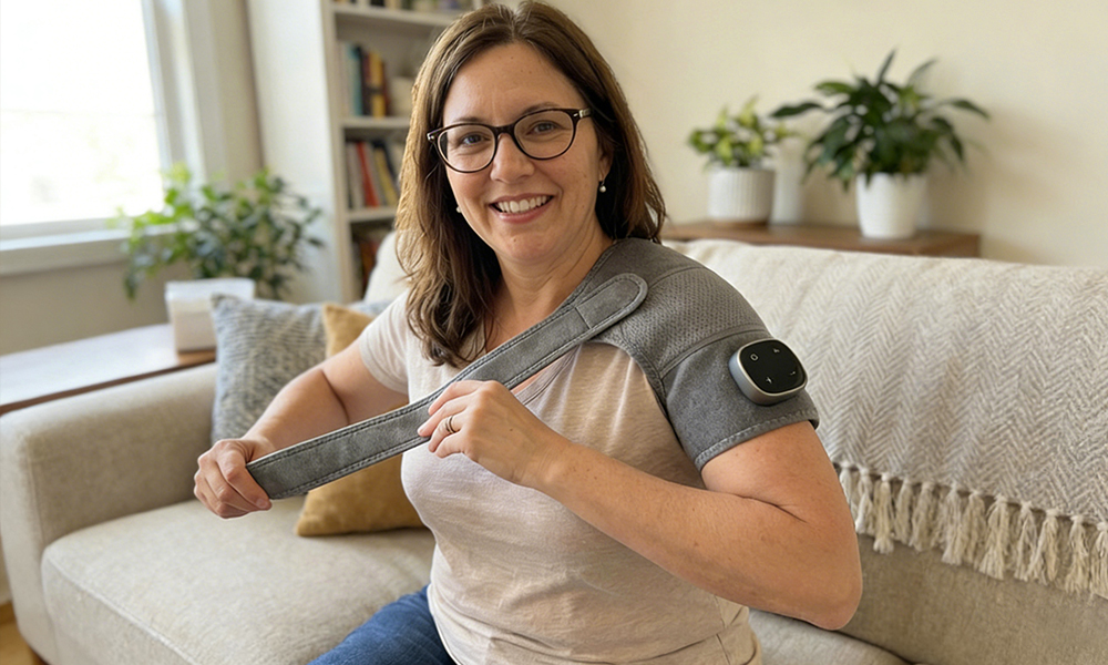 "I had a constant, annoying tingling down my right arm. My physical therapist said it was from my neck, but the clinic was so far away. This device hits the exact spot at the bottom of my neck that my hands could never reach on their own. After two weeks of daily use, my grip feels stronger and I'm back to my knitting projects without having to stop every five minutes to shake my hands."